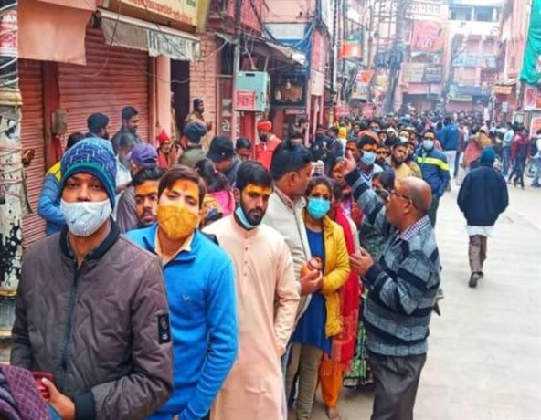 नया वर्ष 2022 के दिन की शुरुआत काशीवासियों ने बाबा श्रीकाशी विश्वनाथ के दर्शन-पूजन से किया। भोर में बाबा की मंगला आरती के बाद से ही आस्थावानों की भीड़ उमड़नी शुरू हो गई। जो दिन चढ़ते-चढ़ते लंबी कतार में बदल गया। मंदिर प्रशासन के अनुसार सुबह 9:30 बजे तक लगभग 50 हजार लोगों ने बाबा का दर्शन किया। नव्य-दिव्य धाम की निराली शोभा को देखकर हर मन हर्षित हो उठा। सभी बाबा से नए वर्ष 2022 में सुख-समृद्धि-आरोग्यता के लिए मनुहार किया। आस्था इतनी की चौक थाने से आगे बढ़ते ही हर-हर, बम-बम के उद्घोष से रग-रग में शिवभक्ति रम जा रही थी। तो कुछ यही हाल गोदौलिया चौराहे तक दिखाई दिया। लंबी कतार होने के बावजूद आस्थावान अपनी बारी का इंतजार करते रहे।
