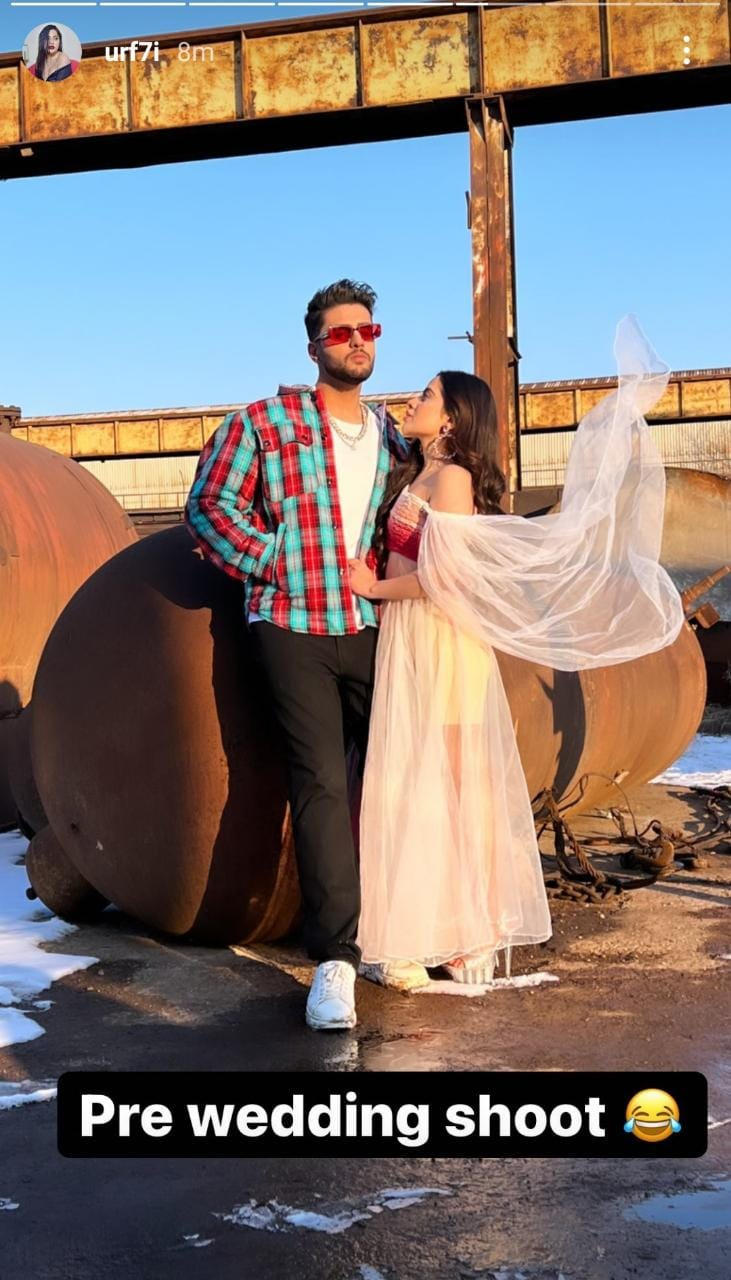 उर्फी जावेद ने अपने आधिकारिक इंस्टाग्राम स्टोरी पर अपनी एक तस्वीर शेयर की है। इस तस्वीर वह एक शख्स के साथ काफी कोजी होती नजर आ रही हैं। वहीं इस तस्वीर के साथ उर्फी ने लिखा, ‘प्री-वेडिंग शूट।’ इस तस्वीर में आप देख सकते हैं कि उर्फी के आस पास काफी बर्फ नजर आ रही है। वहीं उर्फी इस वक्त व्हाइट कलर की ऑफ शोल्डर ड्रेस में नजर आ रही हैं। वहीं उनके साथ जो शख्स खड़ा है उसने ब्लैक पैंट के साथ चेक वाली शर्ट पहनी है। इस दौरान दोनों काफी खूबसूरत नजर आ रहे हैं।
