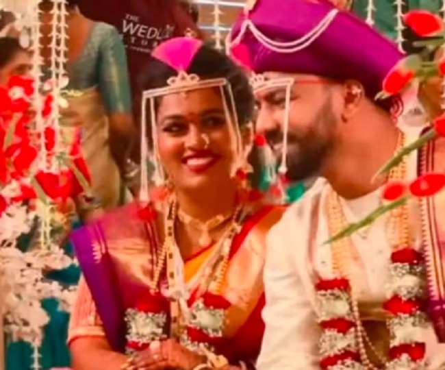 इन दोनों की शादी की तस्वीरों को इंडियन आइडल के कंटेस्टेंट निहाल टौरो ने सोशल मीडिया पर शेयर की है। उन्होंने अपने इंस्टाग्राम अकाउंट की स्टोरी पर सायली कांबले और धवन की शादी की कई तस्वीरों को शेयर किया है, जिसमें दोनों काफी खूबसूरत दिख रहे हैं। तस्वीरों में सायली कांबले मराठी दुल्हन के लुक में नजर आ रही हैं। उन्होंने यलो कलर की साड़ी पहनी हुई है।