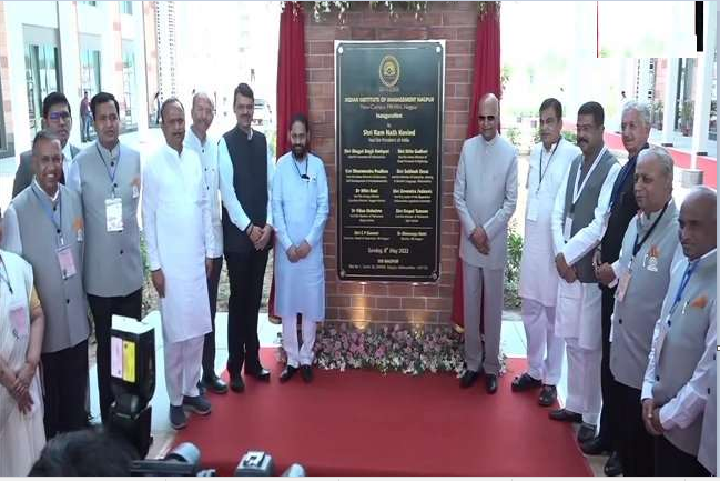 नई दिल्ली, राष्ट्रपति राम नाथ कोविंद ने आज भारतीय प्रबंधन संस्थान (IIM) नागपुर के स्थायी परिसर का उद्घाटन किया। राष्ट्रपति कोविंद ने उद्घाटन समारोह को संबोधित करते हुए कहा कि अब इस संस्थान से निकला हर छात्र बहुत ही काबिल बनने वाला है। उन्होंने कहा कि यहां से निकल मुझे विश्वास है कि आइआइएम-नागपुर का पारिस्थितिकी तंत्र छात्रों को नौकरी तलाशने के बजाय नौकरी देने वाला बनने की मानसिकता प्रदान करेगा। इस दौरान केंद्रीय मंत्री नितिन गडकरी और धर्मेंद्र प्रधान और महाराष्ट्र के मंत्री नितिन राउत और सुभाष देसाई भी मौजूद रहे।