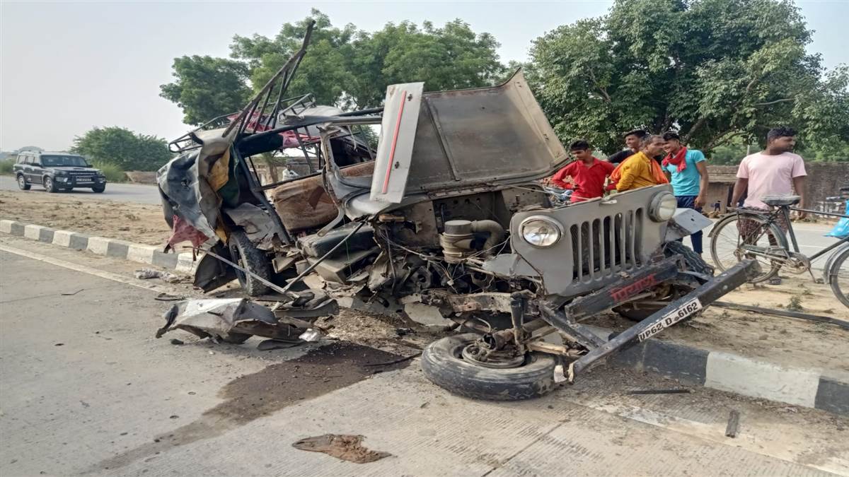 बक्शा थाना क्षेत्र के खुंशापुर गांव निवासी अमरू निषाद के घर से बरात सरायख्वाजा थाना क्षेत्र के बैजारामपुर गई थी। बराती खाना खाकर जीप संख्या यूपी 62 डी 6162 पर सवार होकर घर के लिए प्रस्थान किये। जीप चालक नरी गांव निवासी छोटू यादव जीप में 16 नाबालिक बच्चों सहित के साथ कुल 18 लोगों के साथ घर के लिए चलते हुए मई से होते हुए वाराणसी लखनऊ मार्ग पर चढ़ गया। चालक गलत साइड से अभी मात्र तीन सौ मीटर मड़ैया नौपेड़वा पहुंचा ही था तभी सामने से वाराणसी की तरफ जा रही कंटेनर एचआर 55 एक्स 5834 से सीधी टक्कर हो गई। टक्कर होते ही जीप में चीख पुकार मच गई। सूचना पर पहुंचे एसओ ने घायलों को नौपेड़वा अस्पताल ले गए। जहां चिकित्सकों ने गम्भीर रूप से घायल 14 वर्षीय बादल निषाद पुत्र बृजलाल, 10 वर्षीय सौरभ निषाद पुत्र हरिकेश, 15 वर्षीय सन्दीप निषाद पुत्र राजनाथ, 9 वर्षीय निलेश निषाद पुत्र श्यामू निषाद, 9 वर्षीय अजय निषाद पुत्र श्रीप्रकाश निषाद को बेहतर उपचार हेतु जिला अस्पताल भेज दिया गया।