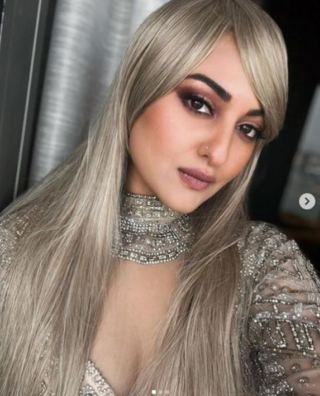 आप देख सकते हैं नई तस्वीरों में सोनाक्षी अपने बालों के ब्लॉन्ड कलर को फ्लॉन्ट करती हुई नजर आईं। ब्लॉन्ड हेयर लुक में सोनाक्षी के बदले हुए लुक की खूब चर्चा हो रही है। जी दरअसल इन तस्वीरों में एक्ट्रेस ने अपने बालों के कलर से मैच करते हुए हैवी एम्ब्रॉयडरी वाली ड्रेस पहनी है। इन तस्वीरों में सोनाक्षी की ड्रेस और उनके बालों का कलर बिल्कुल मैच हो रहा है और एक्ट्रेस ने अपने लुक को स्मोकी आई मेकअप और न्यूड लिपस्टिक के साथ कंप्लीट किया है। वह आकर्षक दिख रहीं हैं और उन्हें बहुत पसंद भी किया जा रहा है।
