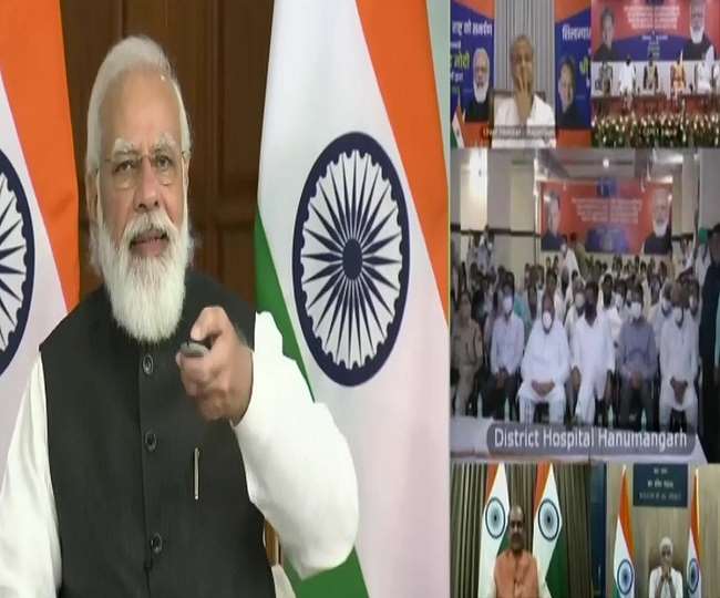 प्रधानमंत्री नरेंद्र मोदी ने आज राजस्थान में चार मेडिकल कालेजों की नींव रखी है। इस दौरान उन्होंने पेट्रोकेमिकल्स टेक्नोलाजी इंस्टीट्यूट का भी उद्धाटन किया। इस मौके पर केंद्रीय स्वास्थ्य मंत्री मनसुख मंडाविया भी मौजूद थे। राज्य के मुख्यमंत्री अशोक गहलोत भी वीडियो कांफ्रेसिंग के माध्यम से जुड़े । इसके साथ ही पीएम मोदी ने स्वास्थ्य क्षेत्र-आयुष्मान भारत और वैक्सीनेशन सहित कई मुद्दों पर अपनी बात रखी।