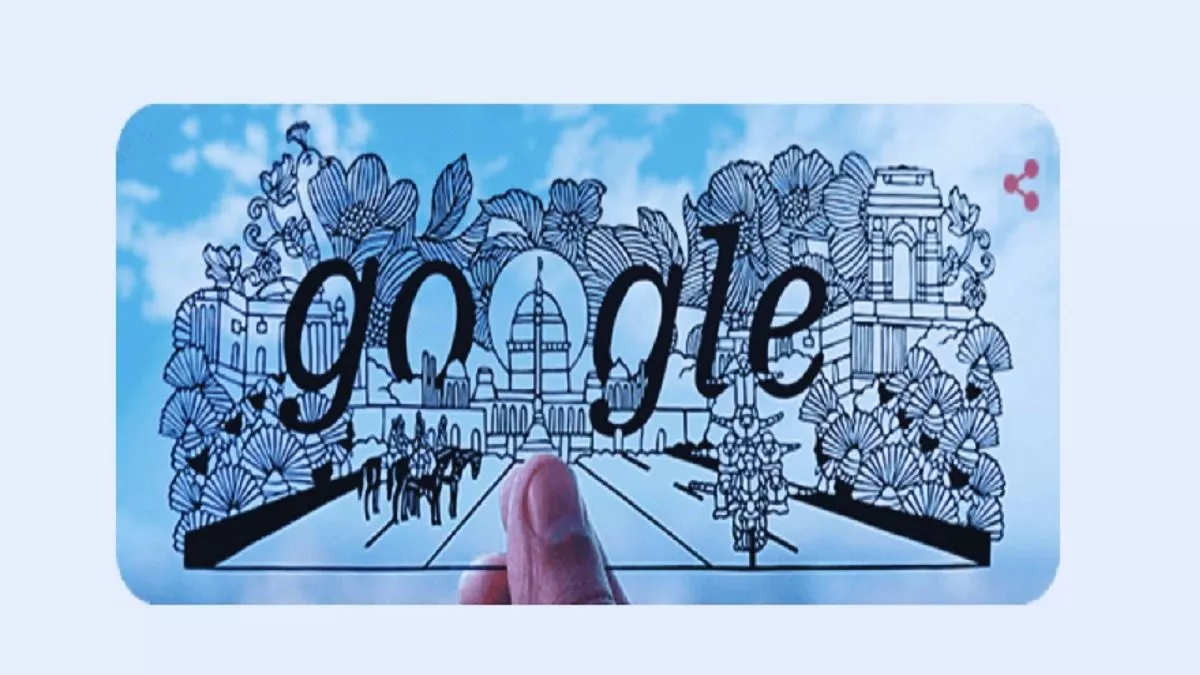 गूगल ने अपने होमपेज पर एनिमेशन के जरिए एक डूडल बनाया है। इस गूगल डूडल में एक पेपर आर्टवर्क नजर आ रहा है, जिसे गुजरात के अहमदाबाद के गेस्ट आर्टिस्ट पार्थ कोथेकर ने तैयार किया है। आज के गूगल डूडल में गणतंत्र दिवस परेड के कई तत्व देखने को मिले। इसमें राष्ट्रपति भवन, इंडिया गेट, सीआरपीएफ मार्चिंग दल और मोटरसाइकिल सवार नजर आ रहा हैं।