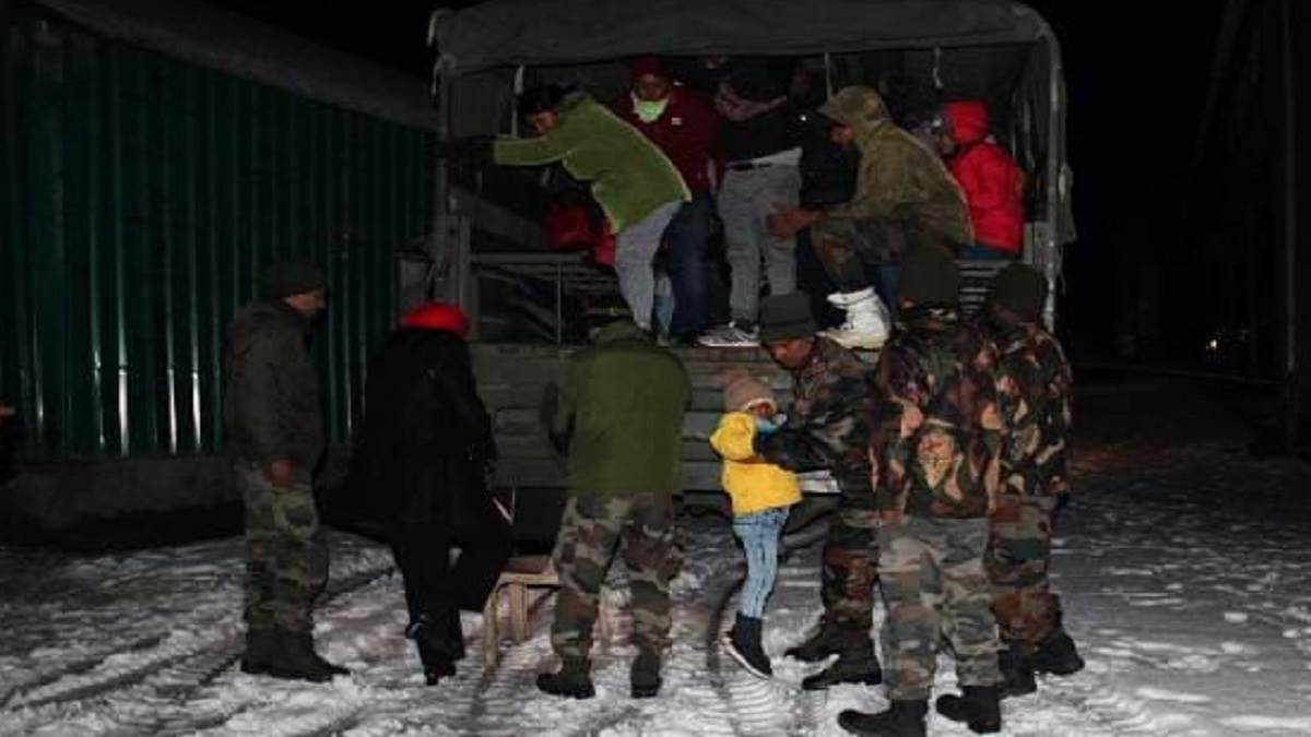 भारतीय सेना के जवानों ने स्थानीय पुलिस और प्रशासन के साथ मिलकर भारी बर्फबारी के बीच नाथुला और त्सोमगो झील से गंगटोक जाने के रास्ते में फंसे लगभग 900 पर्यटकों को सुरक्षित निकाल लिया है।