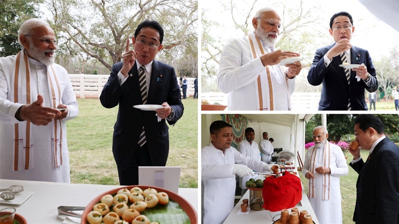 पीएम नरेन्द्र मोदी ने इंटरनेट मीडिया पर एक वीडियो भी शेयर किया है, जिसमें किशिदा को गोल-गप्पे खाते हुए दिखाया गया है। उन्होंने वीडियो को शेयर करते हुए कैप्शन में लिखा, ”मेरे दोस्त जापान के पीएम फुमियो किशिदा ने गोल-गप्पों का लुत्फ उठाया।” वीडियो में जापानी पीएम अपने भारतीय समकक्ष के साथ लस्सी बनाने वाली लकड़ी को घुमाते हुए भी दिखाई दे रहे हैं।