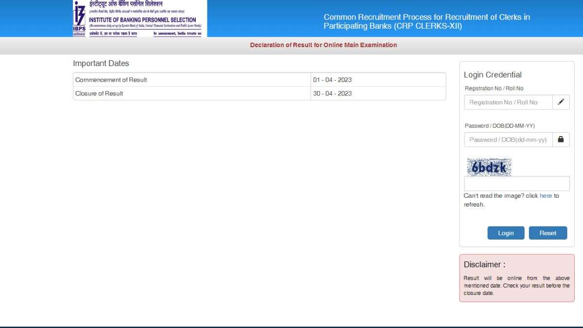 - होम पेज पर उपलब्ध आईबीपीएस क्लर्क मेन्स रिजल्ट 2022 लिंक पर क्लिक करें।