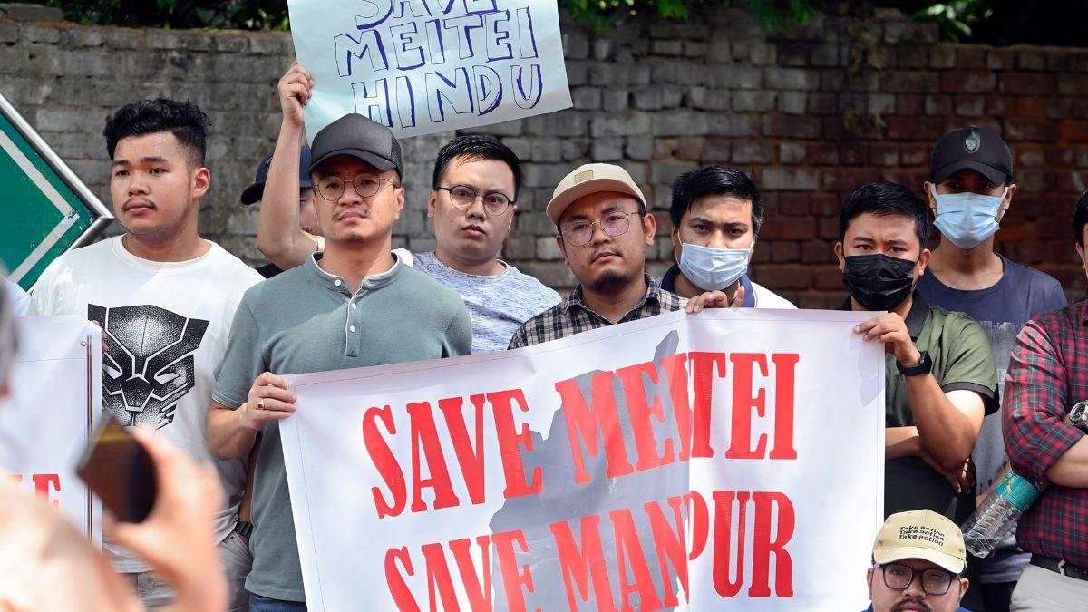 मणिपुर के चूड़चंदपुर में भीड़ से मैती समुदाय के लोगों को बचाने के लिए कुकी महिलाएं बनी दीवार…