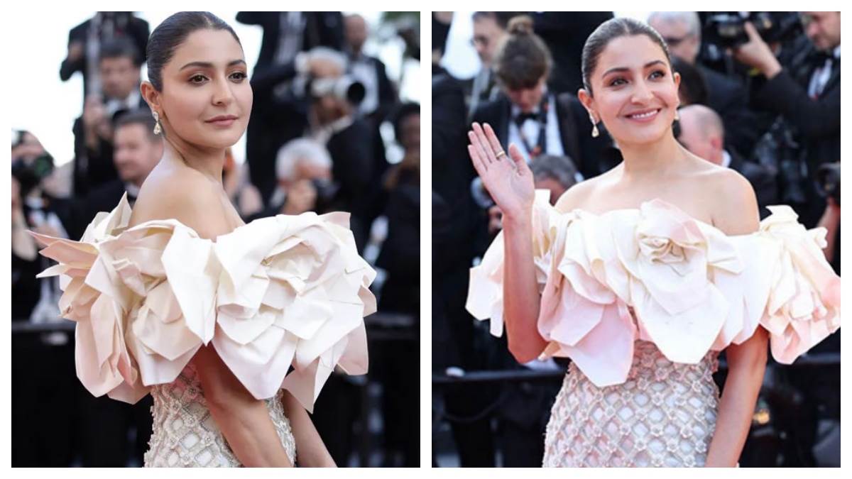 अनुष्का शर्मा ने काफी लंबे समय बाद कान फिल्म फेस्टिवल में डेब्यू किया। हालांकि वो पहली बार में ही तारीफ बटोर रही हैं। मिसेज कोहली ने इस इवेंट के लिए 3डी फूलों से सजा आइवरी गाउन चुना। जिसकी ऑफ शोल्डर डिजाइन और फिगर हगिंग फिटिंग अट्रैक्टिव लुक दे रही थी।