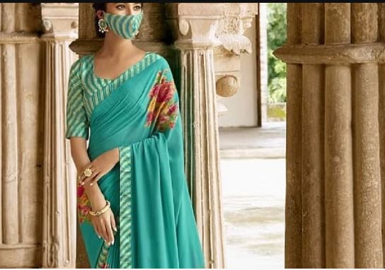 अगर साड़ी और ब्लाउज एक ही स्टाइल या प्रिंट के हों तो एक दम कंट्रास्ट फेस मास्क भी आपके लुक को अक्ट्रेक्टिव बनाएंगे।