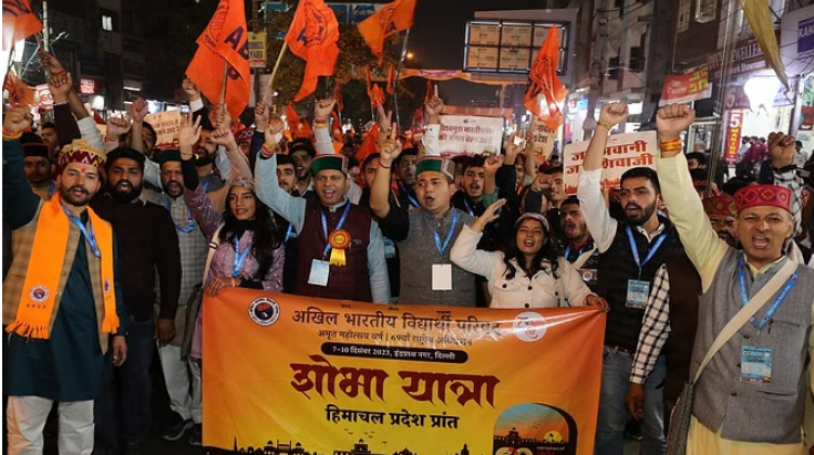 बुराड़ी स्थित टेंट सिटी इंद्रप्रस्थ नगर में अखिल भारतीय विद्यार्थी परिषद (अभाविप) के 69 वें राष्ट्रीय अधिवेशन में विशाल शोभा यात्रा का शनिवार को आयोजन किया गया। यात्रा में शक्ति, संस्कृति के साथ सौहार्द का मिलन देखने को मिला। जगह-जगह मुस्लिम समुदाय के लोगों व बच्चों ने फूल बरसा कर यात्रा का स्वागत किया। 4.5 किमी लंबी शोभायात्रा कार्यक्रम स्थल से डीयू के दौलतराम कॉलेज के मॉरिस नगर चौक तक पहुंची। इसमें देश के विभिन्न राज्यों से आए 10 हजार से अधिक छात्रों ने सहभागिता की। सड़कों पर उमड़ी इस युवा तरुणाई का दिल्लीवासियों ने कुल 62 स्थानों पर पुष्पवर्षा और ढोल नगाड़ों के साथ स्वागत किया।