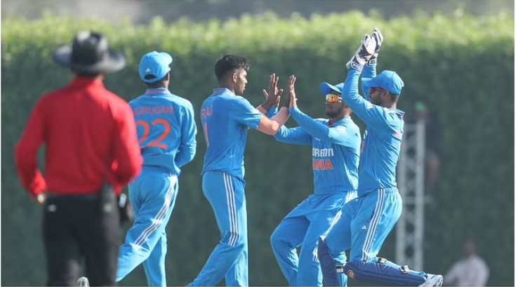 भारत अंडर-19 टीम: अर्शिन कुलकर्णी, आदर्श सिंह, रुद्र मयूर पटेल, सचिन धस, प्रियांशु मोलिया, मुशीर खान, उदय सहारन (कप्तान), अरवेल्ली अवनीश राव (विकेटकीपर), सौम्य कुमार पांडे (वीसी) , मुरुगन अभिषेक, इनेश महाजन (विकेटकीपर), धनुष गौड़ा, आराध्या शुक्ला, राज लिम्बानी, और नमन तिवारी।