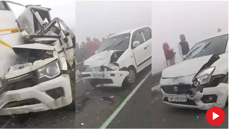 कोहरा बना आफत:जेवर में यमुना एक्सप्रेसवे पर सात गाड़ियां आपस में टकराई