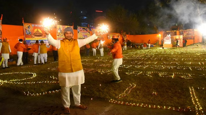 दीपोत्सव से जगमग हुई राजधानी, भजन-गीत गाते हुए चली रामभक्तों की टोली