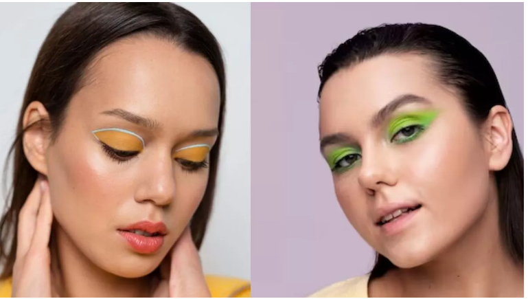 अपने आंखों के इनर कॉर्नर पर केसरिया रंग, बीच में सफेद रंग और किनारे पर हरे रंग की क्रीज बनाकर अपनी आंखों का मेकअप कर सकते हैं। इस लुक के लिए पहले अपनी आंखों पर कंसीलर का इस्तेमाल करें, ताकि आईलिड का बेस सेट हो सके और सभी रंग उभर कर सामने आएं। इसके बाद आंखों के इनर कॉर्नर पर ऑरेंज रंग का आइशैडो लगाएं और बीच की आई लिड पर सफेद रंग को अच्छे से स्मज करें। इसके बाद आंखों के किनारे पर टेप या ब्रश से एंगल बना कर, हरे रंग के आई शैडो का स्ट्रोक लगाएं।